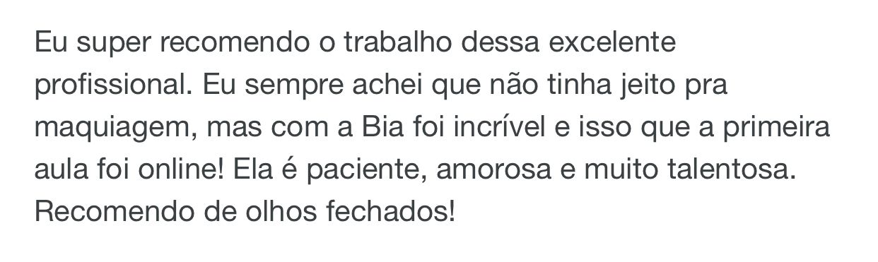 Focamos exclusivamente no seu resultado, pegamos na sua mão e te ajudamos a evoluir na maquiagem. As pessoas irão olhar para você e poderão pensar que usou produtos super caros ou até mesmo que se maquiou com um